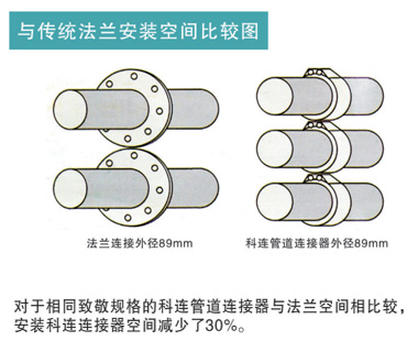 本公司設(shè) 計(jì)的管道連接器 、管道修補(bǔ)器具有 :代替法蘭 、快速連接 、免動火 、施工簡單 、效率高 、節(jié)省空間 、 降低成本 、 針對不同介質(zhì)不同材質(zhì)的管道連